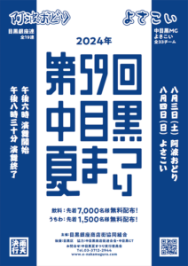 梅雨明けが待ち遠しいですが、もうすぐ夏本番。 中目黒に熱気あふれる夏が来ます。 今年も8月に中目黒夏祭りが行われます。 例年通り、初日は『阿波踊り』、二日目は『よさこい』です。 会場は商店…