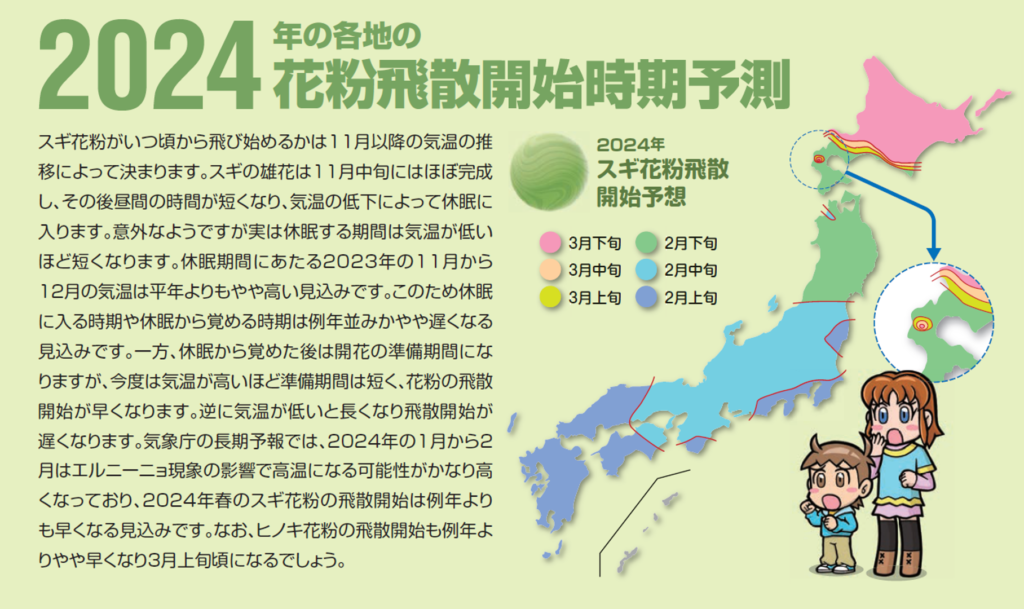 年も明け1月もそろそろ終わろうとしています。2月に入ると本格的な花粉症のシーズンです。今年の予測では都心部のスギ花粉の飛散は2月上旬から始まるとされています。ただ、実際に患者さんを診察していると、すでに花粉症と思われる症状を訴える方が多く来院されています。一般に、症状が出るか、比較的軽微なうちに抗ヒスタミン薬などの内服を開始すると症状が軽く済むとされています。これから数か月、できるだけ辛くならないように早めに対処したいですね。